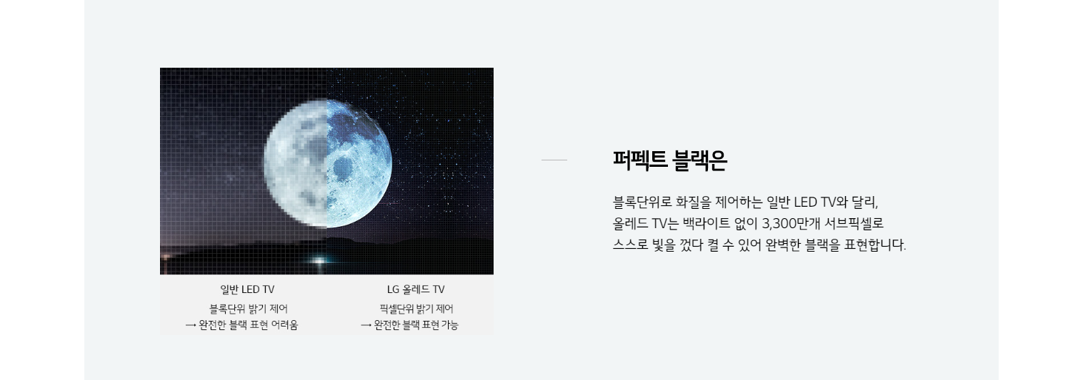 백라이트가 없는 올레드는 자연에 가장 가까운 진정한 블랙을 구현할 수 있습니다