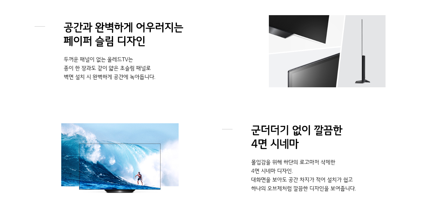 백라이트 없이 3,300만개의 서브 픽셀이 스스로 빛을 내는 올레드는 자연색 그대로의 완벽한